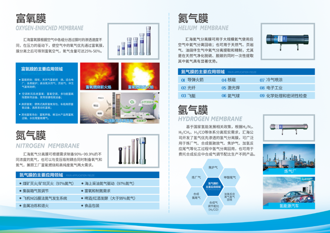 本次參展的產品主要有:二氧化碳分離膜、氧氣氮氣分離膜、氫氣氦氣分離膜和VOC分離膜,可為天然氣、油田伴生氣、沼氣、煤焦、鋼鐵、水泥、農產品保鮮倉儲及物流運輸等行業提供二氧化碳捕集、硫化氫脫除、富氧燃燒、富氧呼吸、氮氣保護、氫氣氦氣回收、VOC治理等氣體分離系統及技術支撐,對提升我國戰略資源儲備,實現“雙碳”目標,以及節能減排、廢氣回用等方面具有重要的社會意義和經濟意義。
